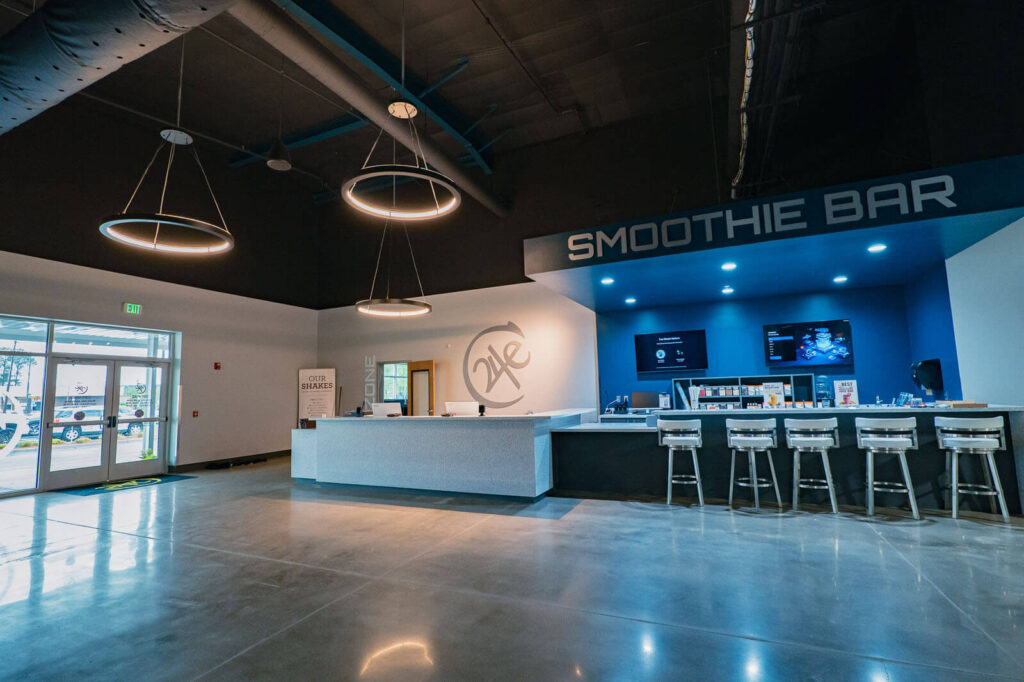 A smoothie bar and retail area will be constructed in the front of house, and an open-air gathering patio for post-workout cool-down will be installed. Exterior building elements are comprised of special Strukuroc metal building panels, EIFS, brick wainscot, and Hardie panel skins. The front, rear, and side patio areas will receive large aluminum canopies.
