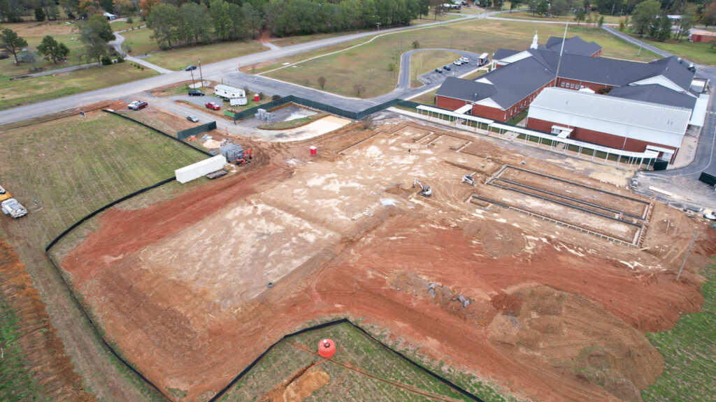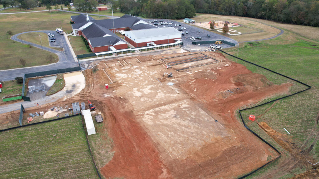 The building will include a storm shelter with a hollow-core elevated slab and FEMA-rated doors and windows. The interior is comprised of CMU and metal stud walls, sheetrock, acoustical ceilings, aluminum storefront entry doors and windows, ceramic tile, LVT, and cove base. Laminate casework will be installed throughout the classrooms and workroom areas.