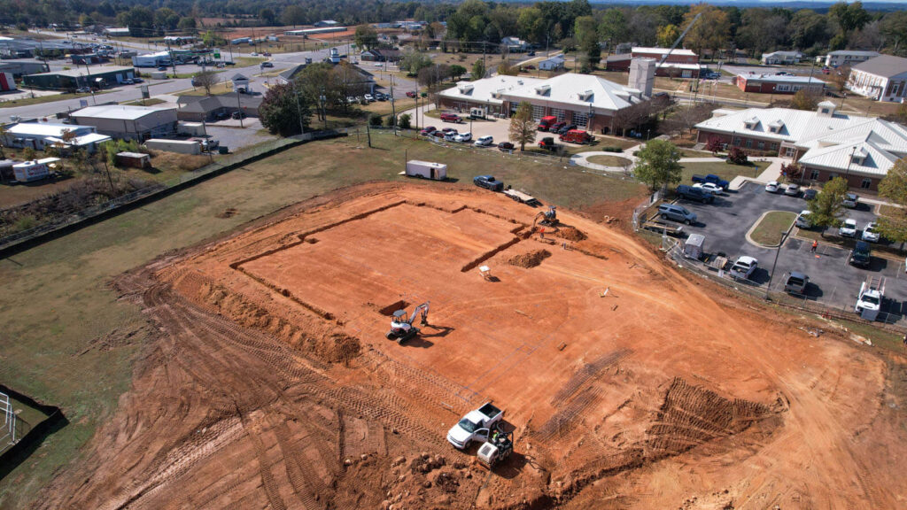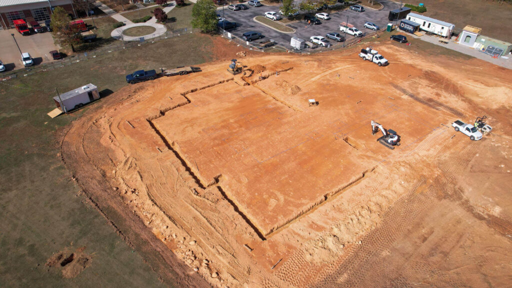 The building will include a storm shelter constructed with structural steel and elevated metal decking, equipped with FEMA-rated doors and windows. The interior consists of metal stud walls, acoustical ceilings, aluminum storefront entry doors and windows, ceramic tile, vinyl and hardwood flooring, and polished concrete with epoxy terrazzo at the entrance.