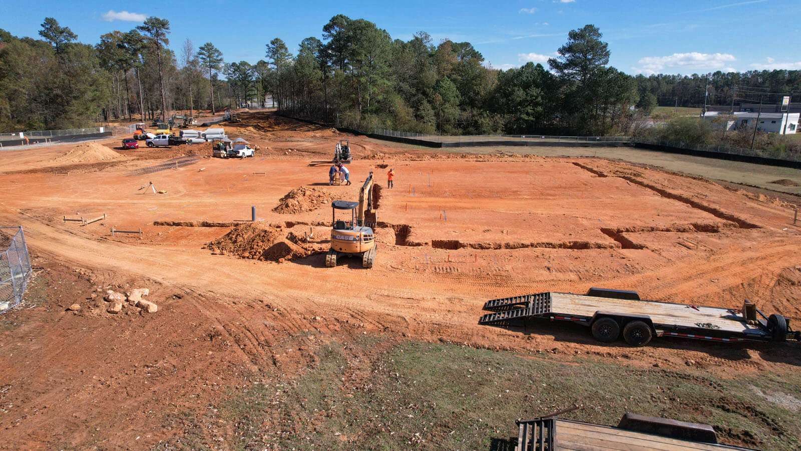 The building will include a storm shelter constructed with structural steel and elevated metal decking, equipped with FEMA-rated doors and windows. The interior consists of metal stud walls, acoustical ceilings, aluminum storefront entry doors and windows, ceramic tile, vinyl and hardwood flooring, and polished concrete with epoxy terrazzo at the entrance.
